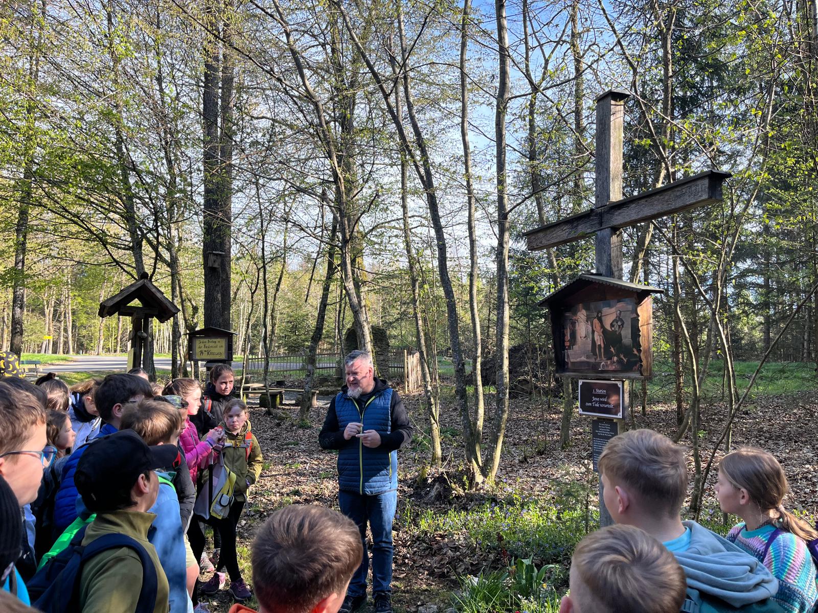 Eine ganz besondere Kreuzweg-Wanderung erlebten die beiden vierten Klassen der VS-Gamlitz am letzten Schultag vor den Osterferien unter der Begleitung von Pfarrer Robert Schneeflock in Weinburg.