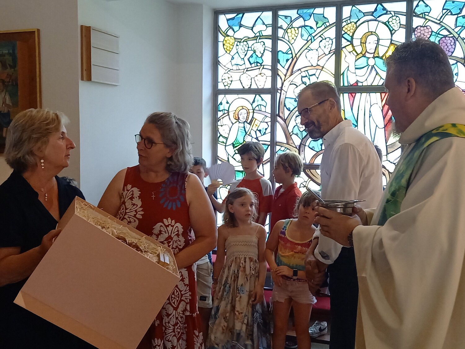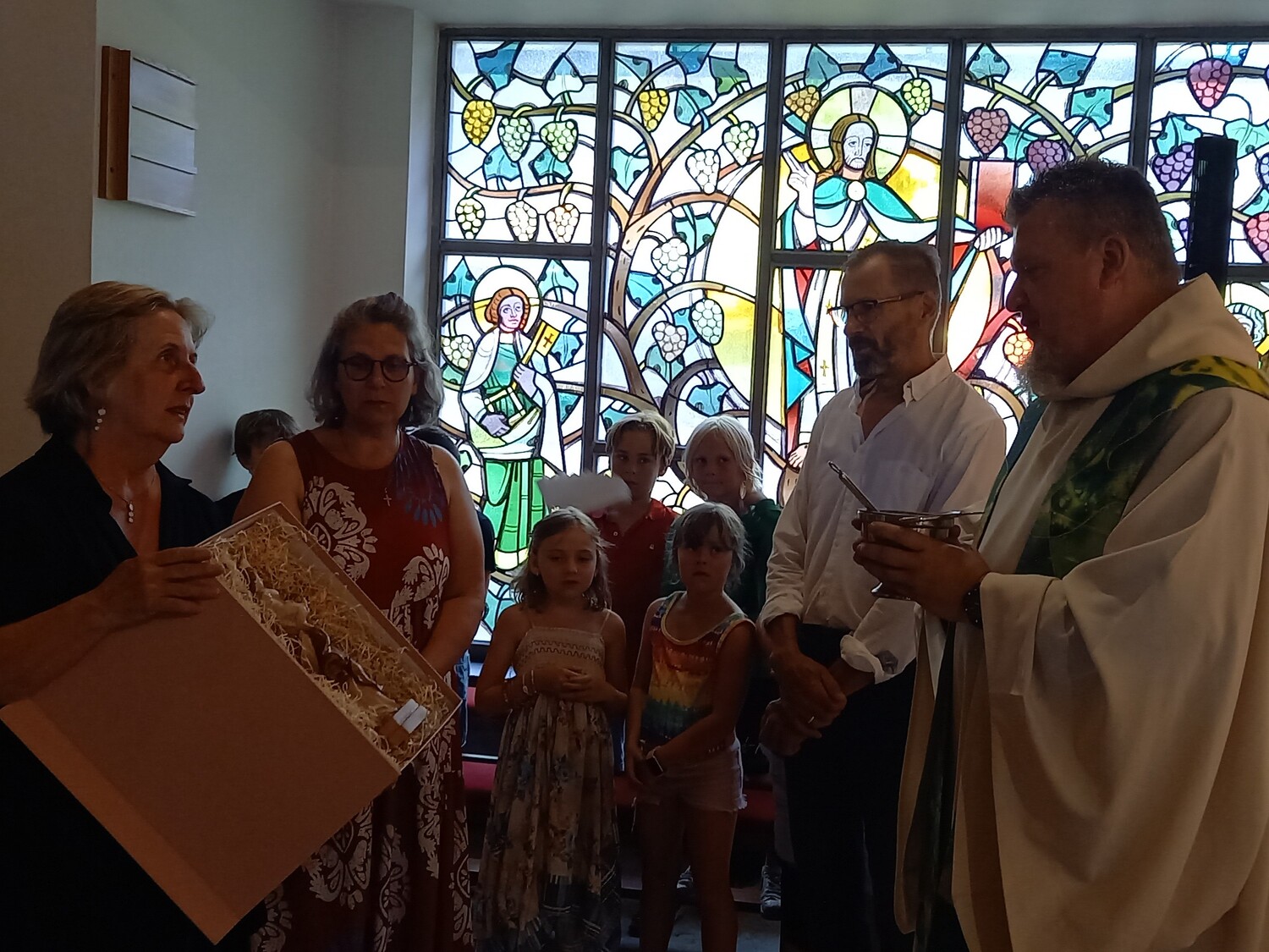 Pfarrer Mag. Schneeflock segnete die Statue bei der Übergabe - und mit ihr auch Maria und ihre Familie. Wie eine Mutter ihre Kinder immer im Herzen trägt, tragen auch wir die Erinnerung an die Zeit mit Maria im Herzen.