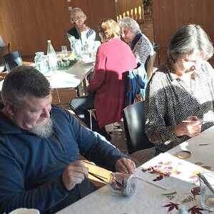 Am Fest­tag des Hei­ligen Martin tra­fen sich die Gäs­te des Se­ni­oren­nach­mit­tags wie­der in ge­müt­lich­er Runde zum an­ge­reg­ten Aus­tausch, zum Kar­ten spie­len und  be­geis­ter­te Bastler:­innen waren ein­ge­la­den, selbst Licht­gläser und Ker­zen mit bun­ten Herbst­blät­tern zu ver­zier­en.