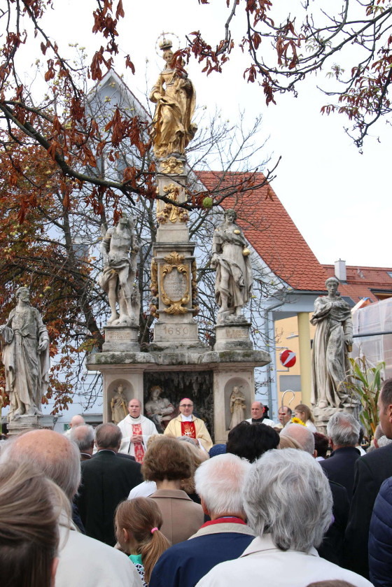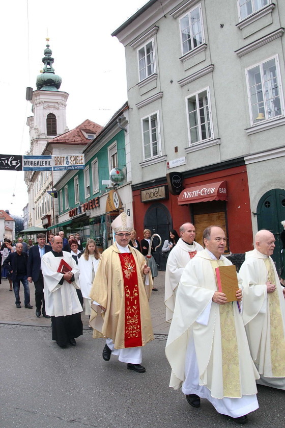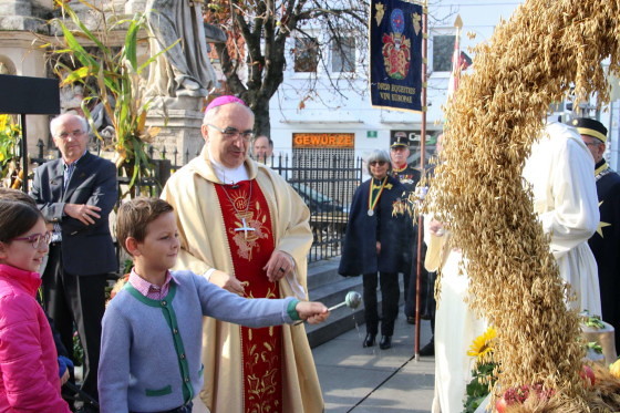 Am Sonntag, den 29. September 2019, feierte die Pfarre Graz-Mariahilf gemeinsam mit den Weinrittern, dem Grazer Bürgerkorps und den marktbeschickenden Bauern bei Sonnenschein ihr Erntedankfest bei der Marienstatue am Lendplatz. Hauptzelebrant und Festprediger des feierlichen Gottesdienstes war Diözesanbischof Dr. Wilhelm Krautwaschl. Am Ende des Erntedankgottesdienstes wurden auch die 13 neuen Glockenspielglocken, die das Mariahilfer Glockenspiel vervollständigen sollen, von Bischof Wilhelm geweiht.