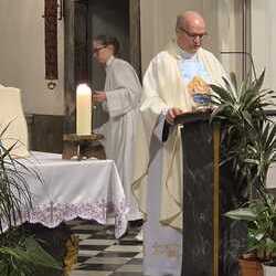 Am 25. März, Hochfest Verkündigung des Herrn, haben wir unser Patroziniumsfest gefeiert. Nach der Heiligen Messe war die Lichterprozession im Kreuzgang.