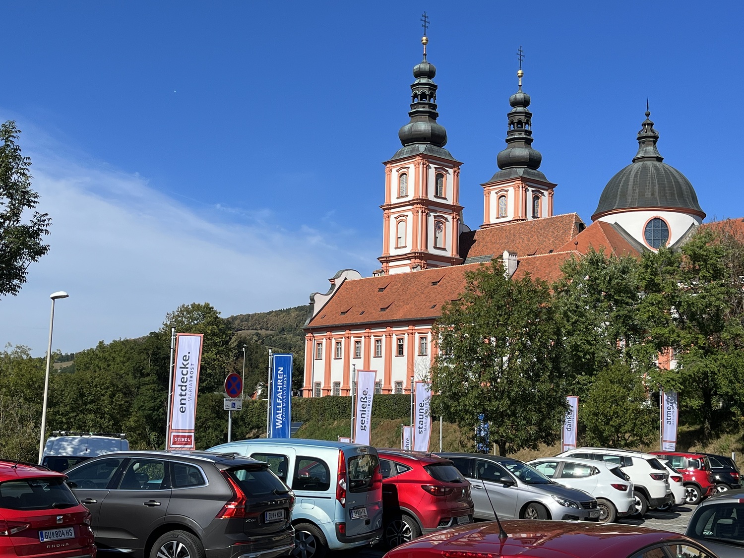 15 Unternehmen und Institutionen helfen – optisch fein sichtbar gemacht durch 18 Fahnen – mit, auf die Tiefenwirkungen von MARIATROST aufmerksam zu machen: 4 THEMEN-Fahnen stimmen die Besuchenden auf das Kirchenjahr ein und 14 SPONSORING-Fahnen signalisieren die verlässliche Projektbegleitung durch die Sponsoren.