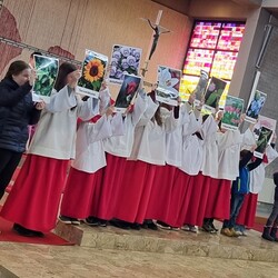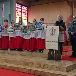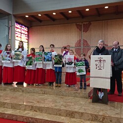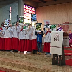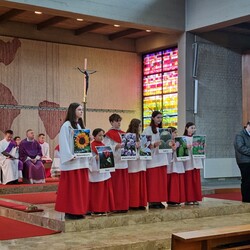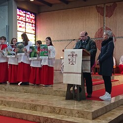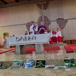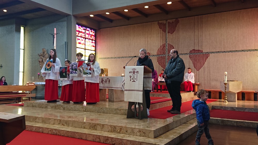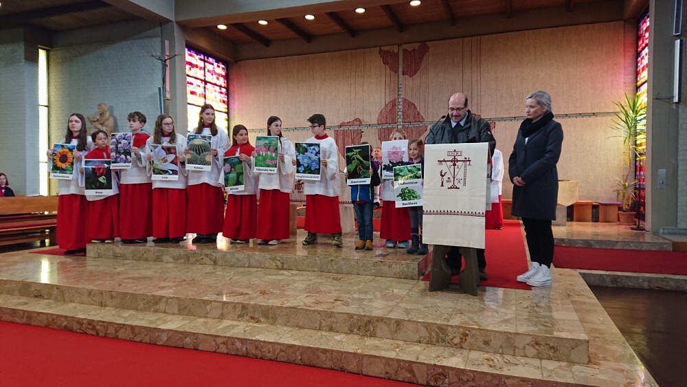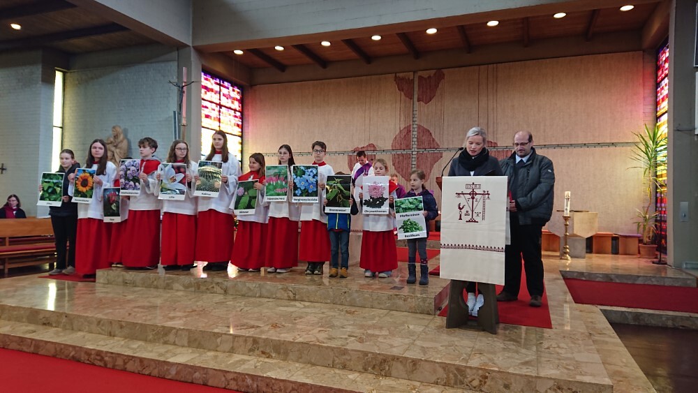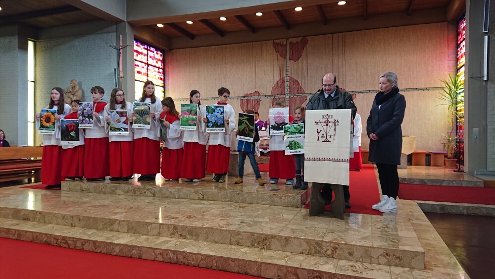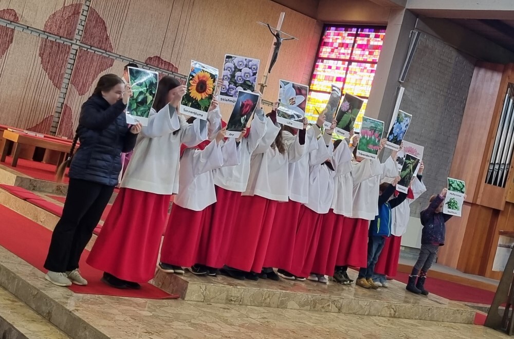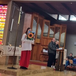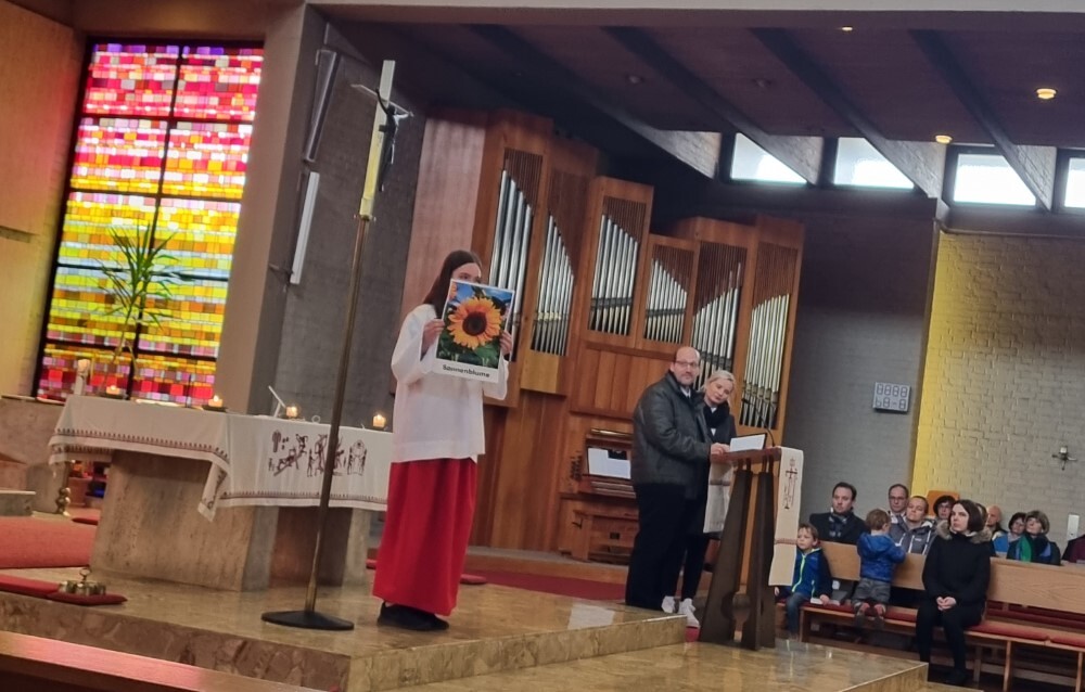 Gemeinsam mit Pfarrer Claudiu Budau und Diakon Wolfgang Garber feierten viele von ihnen den sonntäglichen Gottesdienst. Pastoralreferentin Ines und der neue Pastoralpraktikant Markus stellten mit unterschiedlichen Blumenbildern und der Beschreibung ihrer Eigenschaften auch anschaulich die Verschiedenheit der Aufgaben und Einsatzbereiche der ehrenamtlichen Mitarbeiter und Mitarbeiterinnen dar.