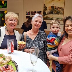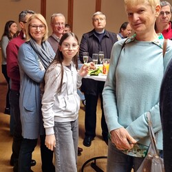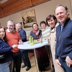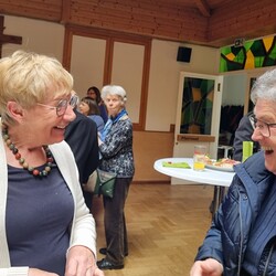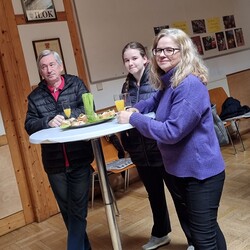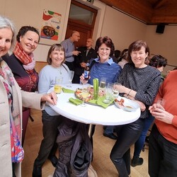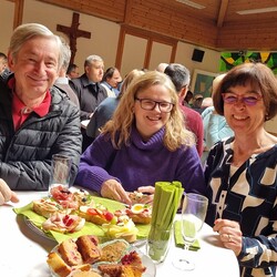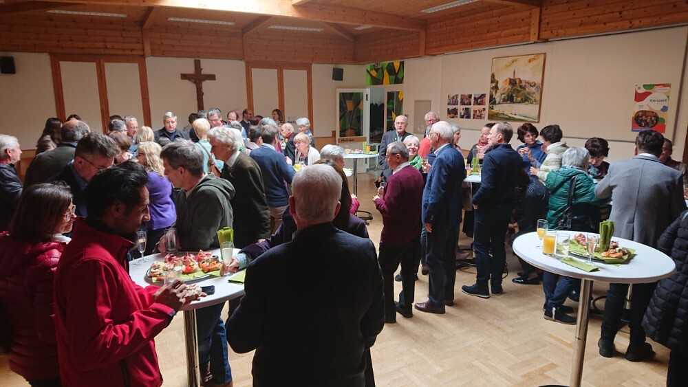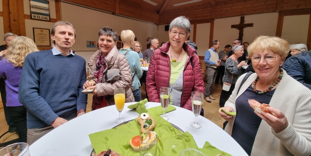 Und dann ging`s erst richtig los. Alle ehrenamtlichen Mitarbeiterinnen und Mitarbeiter wurden zu Sekt und Brötchen in den Pfarrsaal eingeladen.