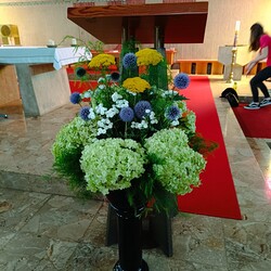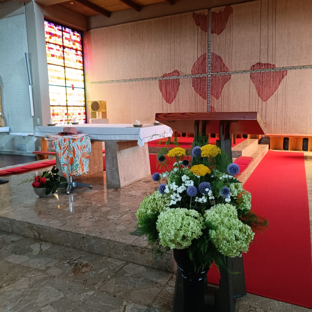 "Gesegnet in den Sommer" war das Thema des Gottesdienstes am Ferienbeginn. Wunderschöne Lieder vom Jugendchor, tolle Gedanken und Impulse von Pfarrer Claudiu Budau zu den Bibelstellen auch in Bezug auf die Sommersymbole vor dem Altar halfen uns gut behütet (Strohhut), mit einem neuen Blickwinkel (Sonnenbrille) und uns auf neue Themen einstellend (Zeitschrift) in die Sommermonate zu starten.