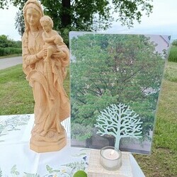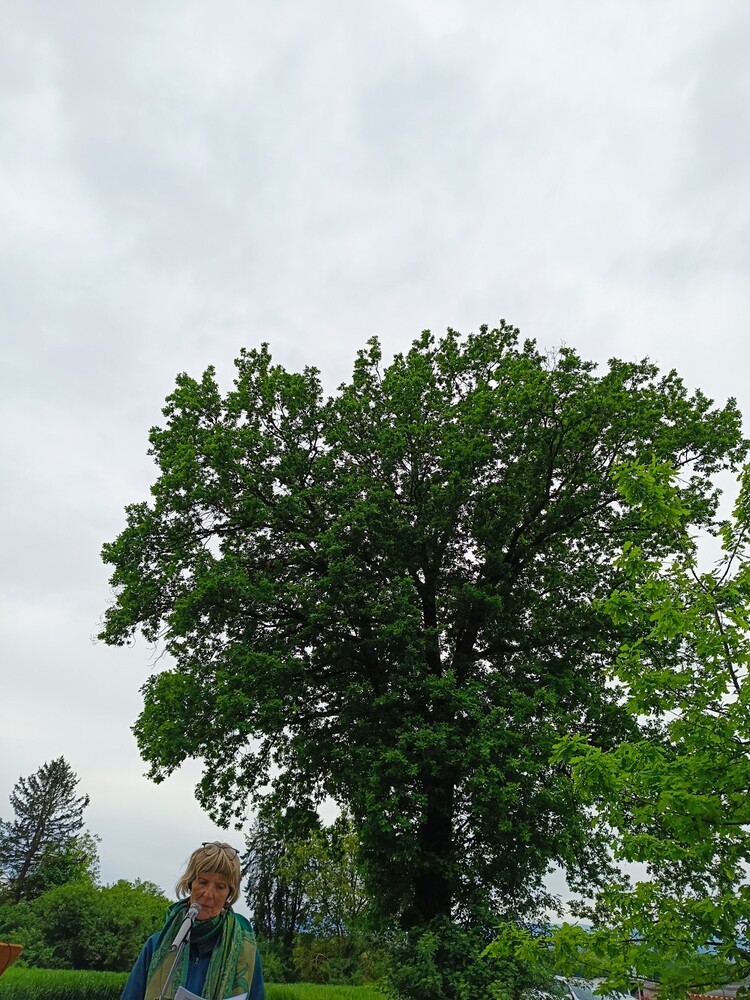 Besonders schön ist dieser Platz, weil er von großen und alten Bäumen umgeben ist. In dieser Andacht baute ich eine Brücke von der Linde, die mein Geburtstagsbaum und die Pflanze des Jahres 2025 ist, und Maria, die fest verwurzelt im Vertrauen zu Gott die Schätze des Himmels empfängt, und Gott sichtbar und spürbar in unsere Lebenswelt hineinträgt.