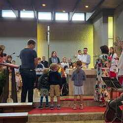 Gesegnet und gestärkt konnten die Gottesdienstbesucher:innen das neue Schul- und Arbeitsjahr beginnen. Alle Kindergarten-, Schultaschen, Unirucksäcke, Laptoptaschen...und Koffer wurden mit ihren Besitzer:innen mit dem Segen Gottes und dem Wissen "Ich bin nicht allein" begleitet. Als Erinnerung daran wurden kleine Segens- und Stärkungssymbole verteilt. Tina Schörgi lud alle ein wieder mehr zu segnen, was jede und jeder darf, und den Mitmenschen Gutes zu wünschen: durch ein Kreuz auf die Stirn beim Gute Nacht sagen, beim Anschneiden eines Laib Brotes, beim Abschied mit Weihwasser.... Alle Kinder erhielten kleine Weihwasserfläschchen und die Erwachsenen die Erinnerung, dass wir "Gott befohlen" sagen, wenn wir "tschüss" sagen, das vom französischen a dieu kommt oder "God be with you" beim Gruß "bye, bye". Ein gemischter Chor hat die Feier wunderschön musikalisch gestaltet.