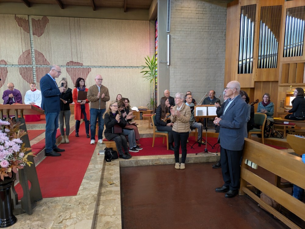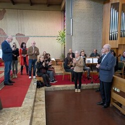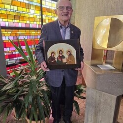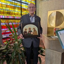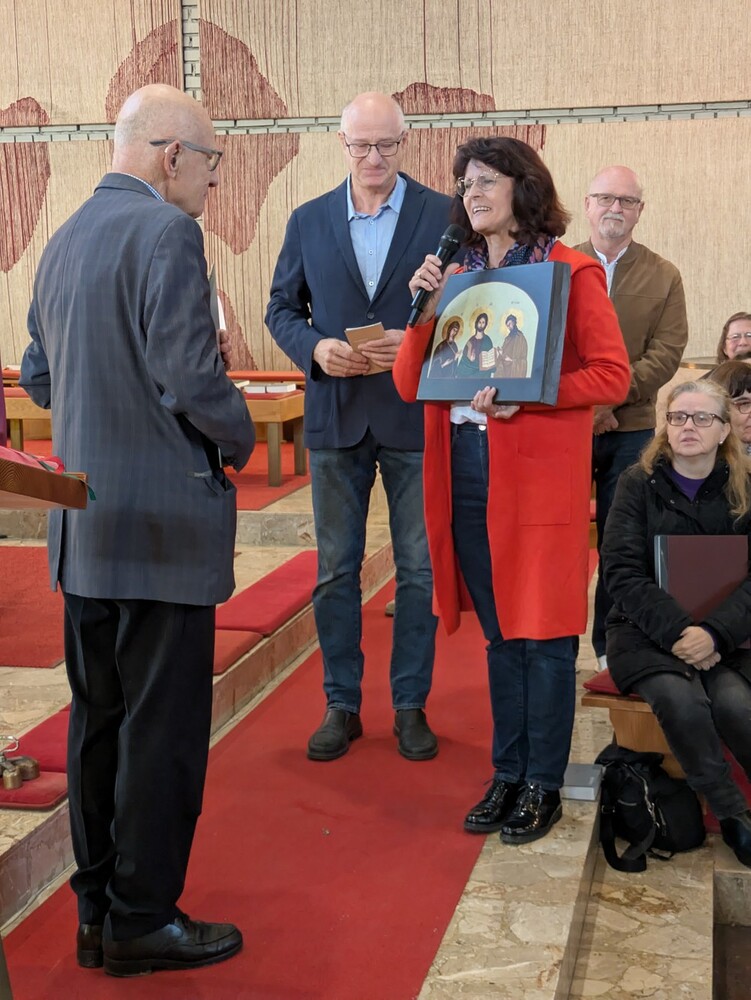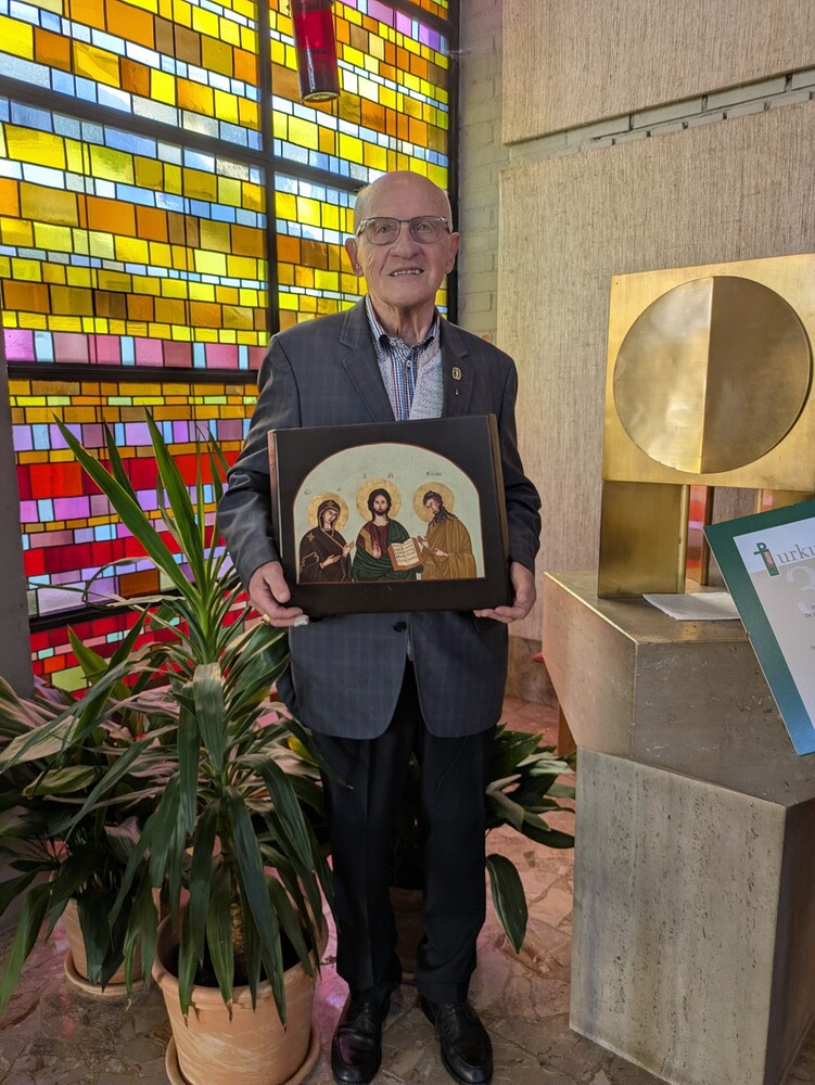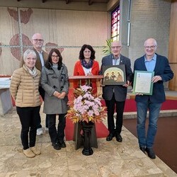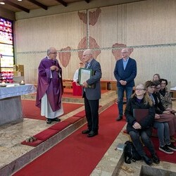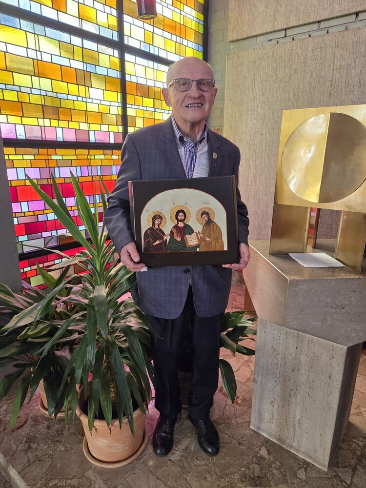 engagiertes Mesnerteam, das mit ihm feierte. Pfarre und besonders das Liturgieteam bedankten sich auch für seine vielfältigen anderen liturgischen Dienste mit einer Ikone als Geschenk.