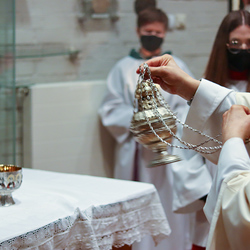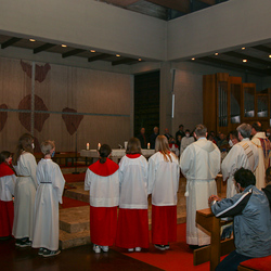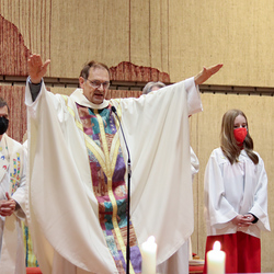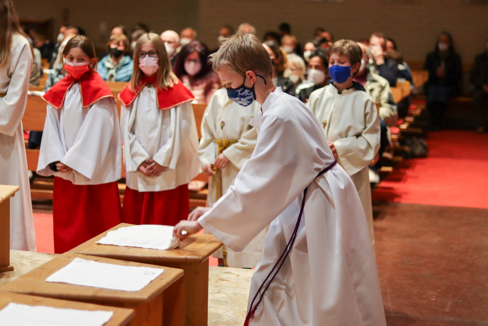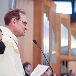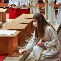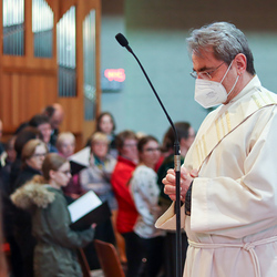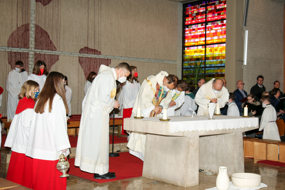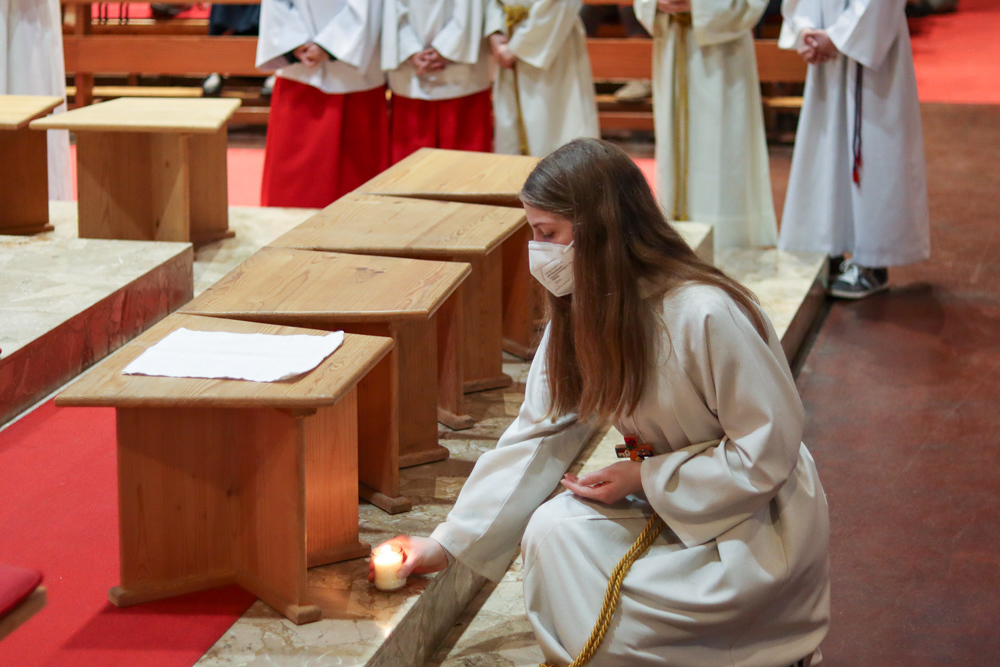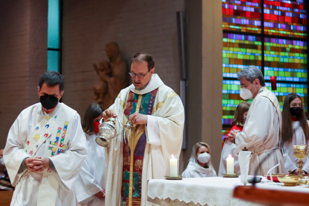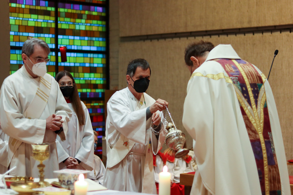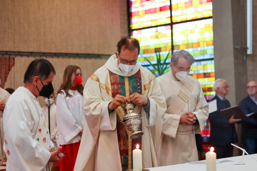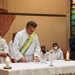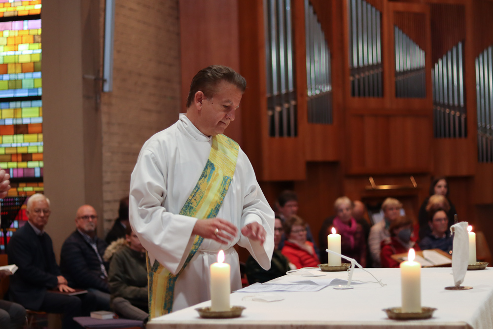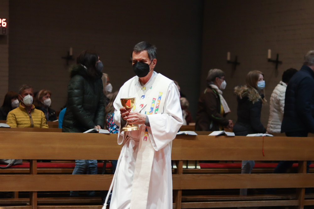 In einer etwas anders gestalteten Fußwaschung wurde jenen gedacht, die nicht oder nicht mehr am Leben der Kirche teilnehmen können oder möchten. Die Stühle blieben leer. Symbolisch für Rand- und Zielgruppen und jene Menschen, die unsere Gesellschaft mitprägen, wurden Kerzen entzündet. Als Zelebranten fungierten unsere drei Priester, drei Diakone sowie alle Pastoralreferentinnen und Referenten, welche den Sendungsauftrag im Seelsorgeraum Kaiserwald erfüllen.