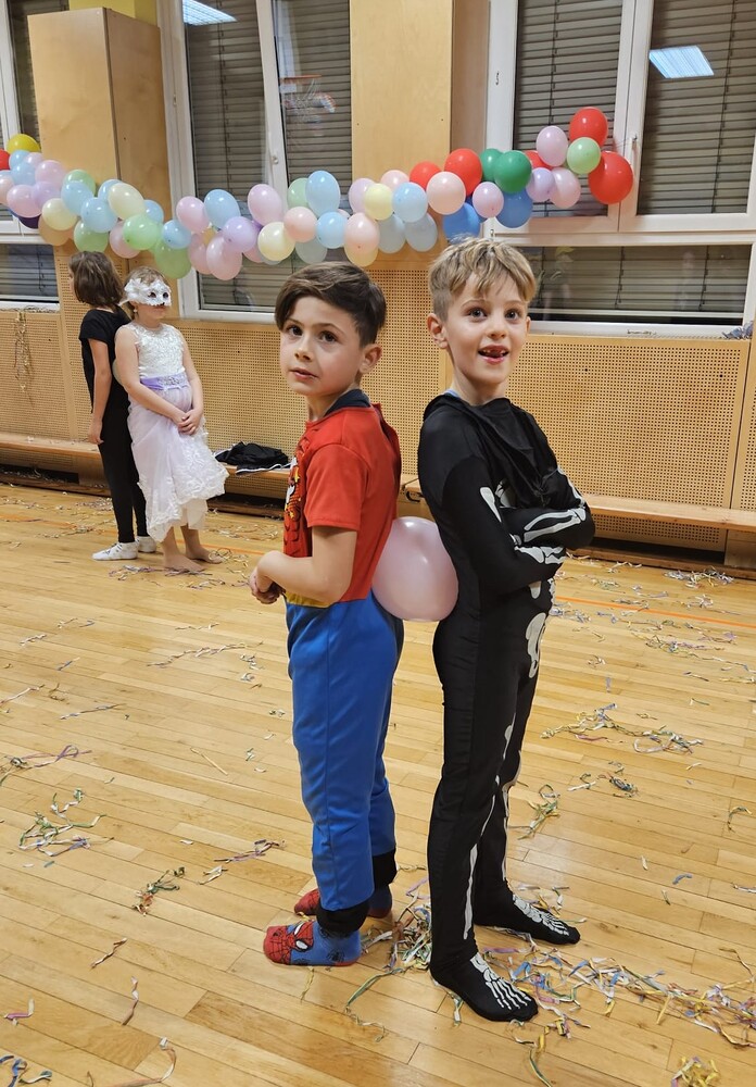 Die Faschingsparty besuchten 27 Kinder. 7 Betreuer:innen setzten sich mit ihrer ganzen Kraft ein. Wir sagen DANKE!
