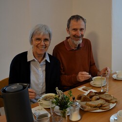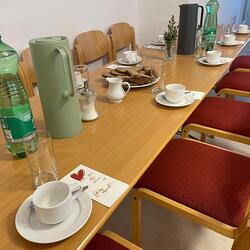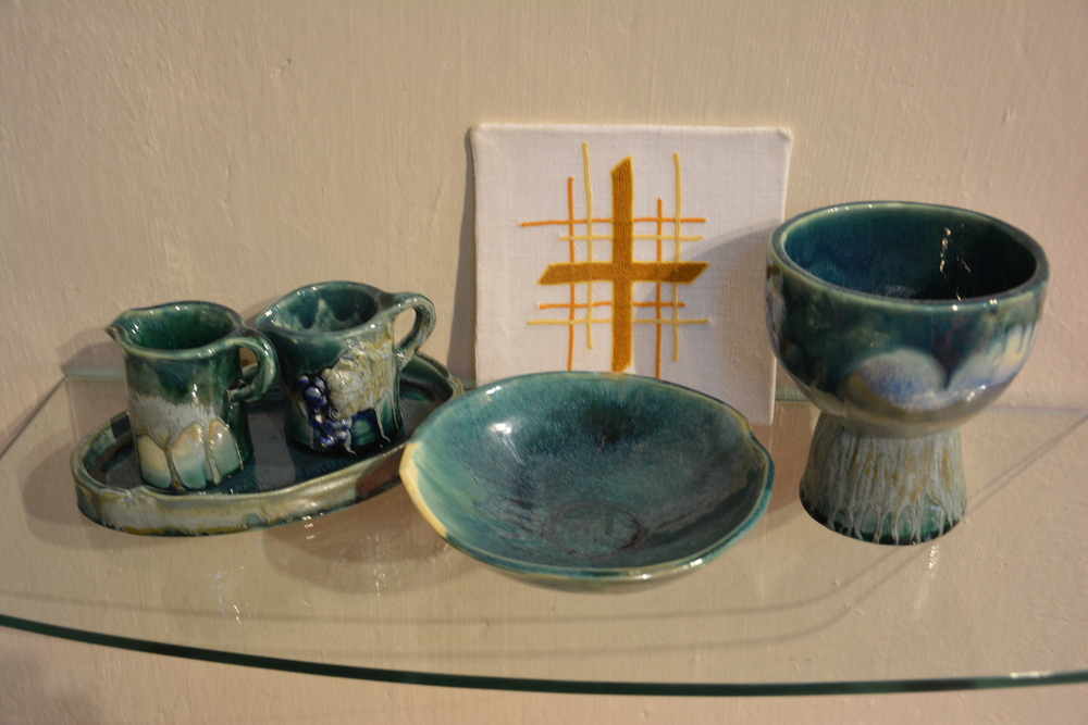 Aufmerksamen Kirchenbesucher:innen ist es sicher schon aufgefallen. Es gibt neue liturgische Geräte für die Feier des Abendmahls. Messkännchen, Hostienschale und Kelch sind aus Ton gefertigt und mit einer kostbaren Glasur versehen. Sie wurden von Maria Strohmaier, einer Keramikkünstlerin aus Lannach, hergestellt.