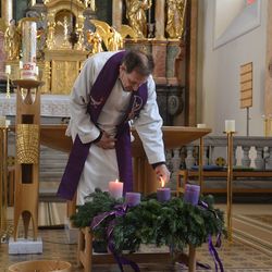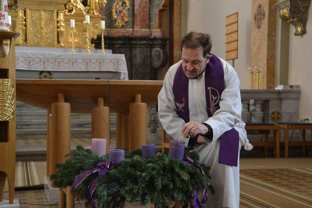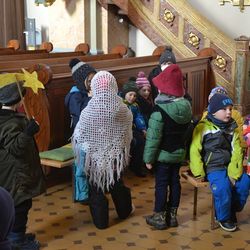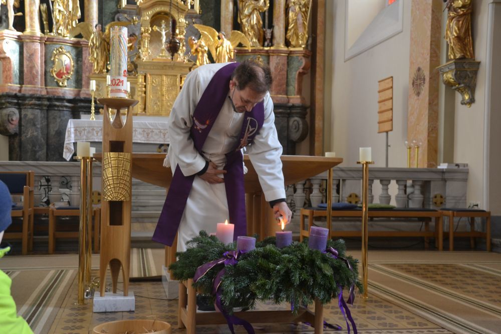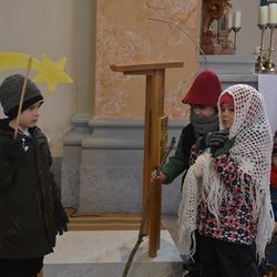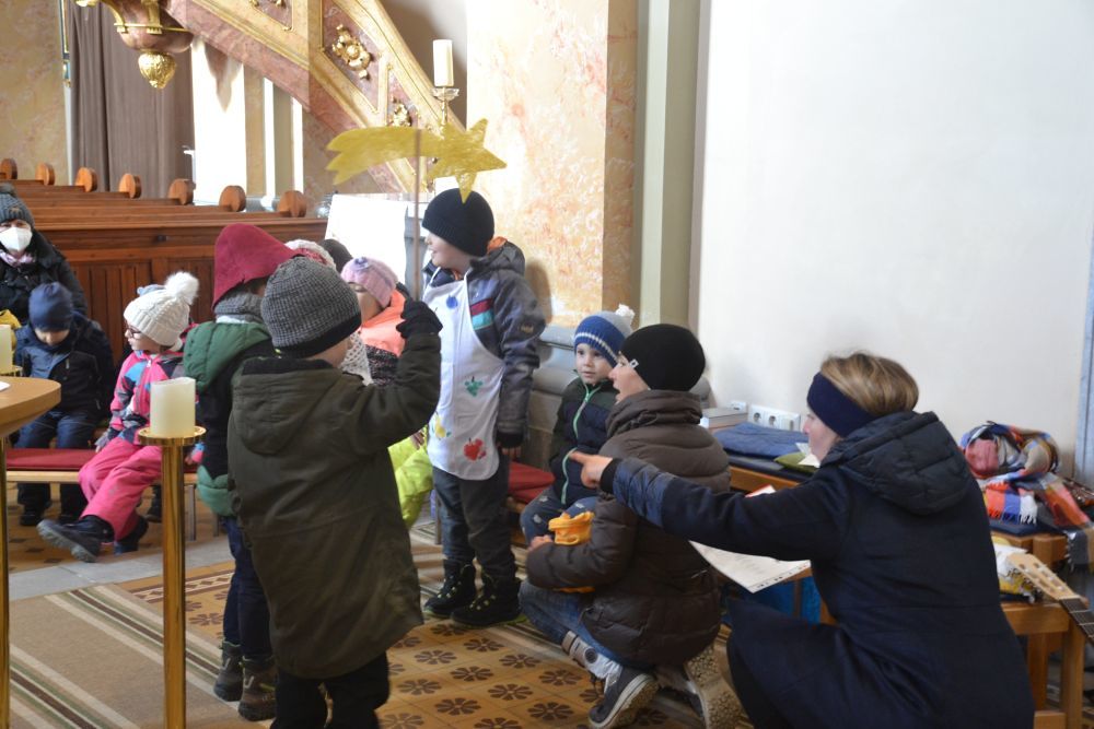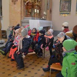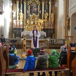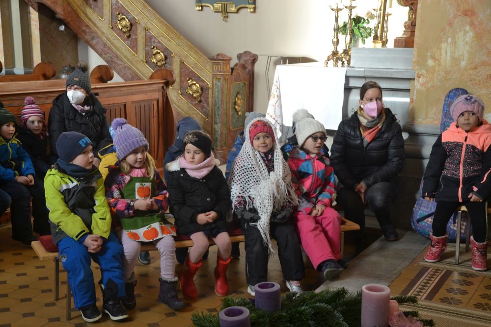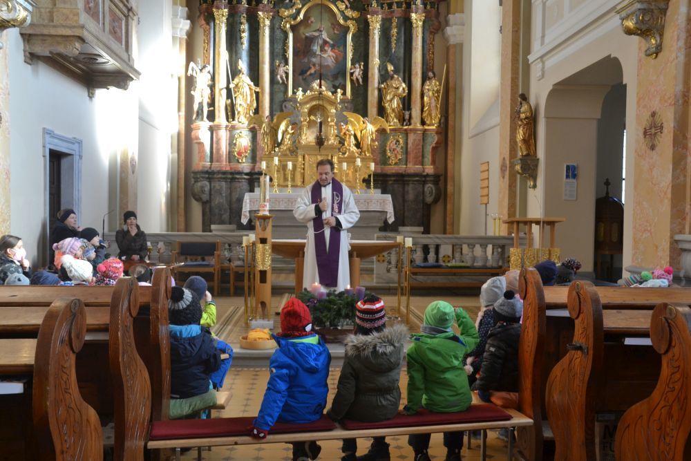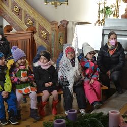 In der Pfarrkirche gestalteten die Kinder mit ihren Pädagoginnen eine Vorweihnachtsfeier. Vikar Gerhard Hatzmann zündete die Kerzen des Adventkranzes an, die Kinder spielten die Herbergssuche, Vikar Gerhard segnete alle zum Abschluß.