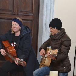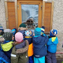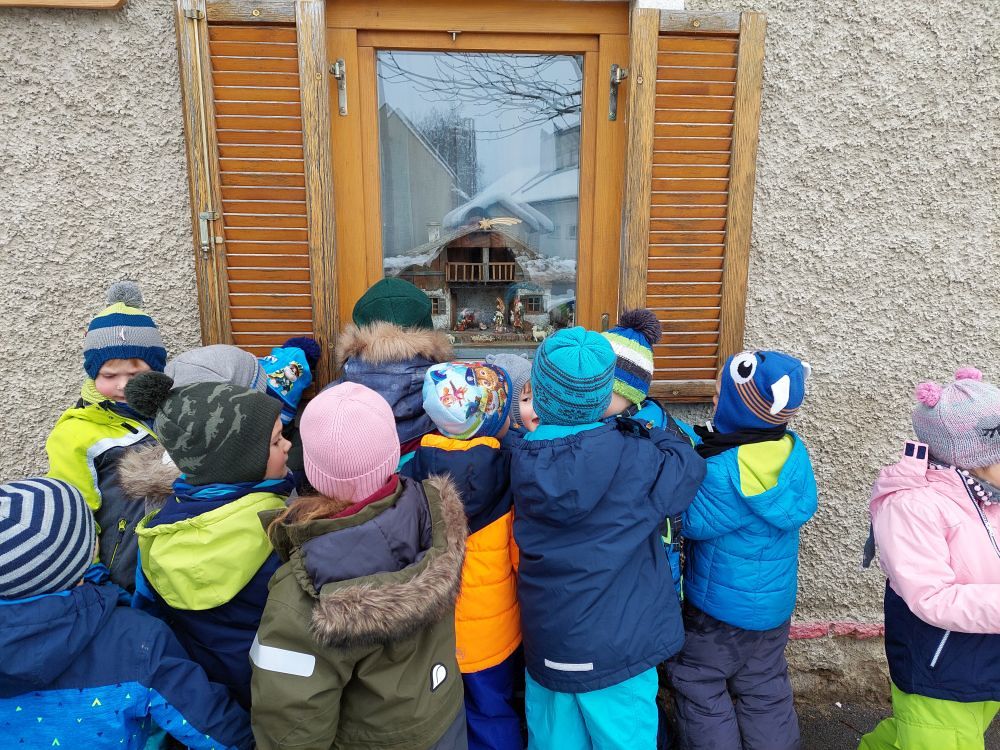 ... staunten über die Krippe im Fenster des Brauchtumhauses