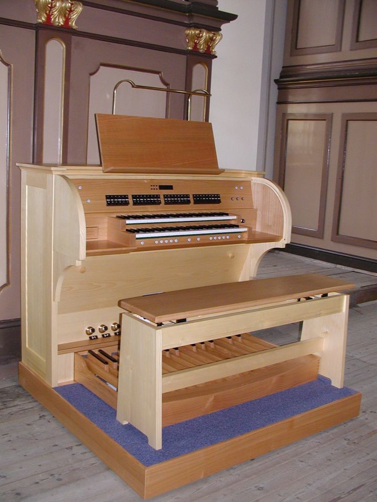 Der neue elektronische Spieltisch mit verschleißarmen optischen Signalgebern, Bussystem und Sequenzer mit 4000 speicherbaren Registerkombinationen zählt zu den modernsten Österreichs.