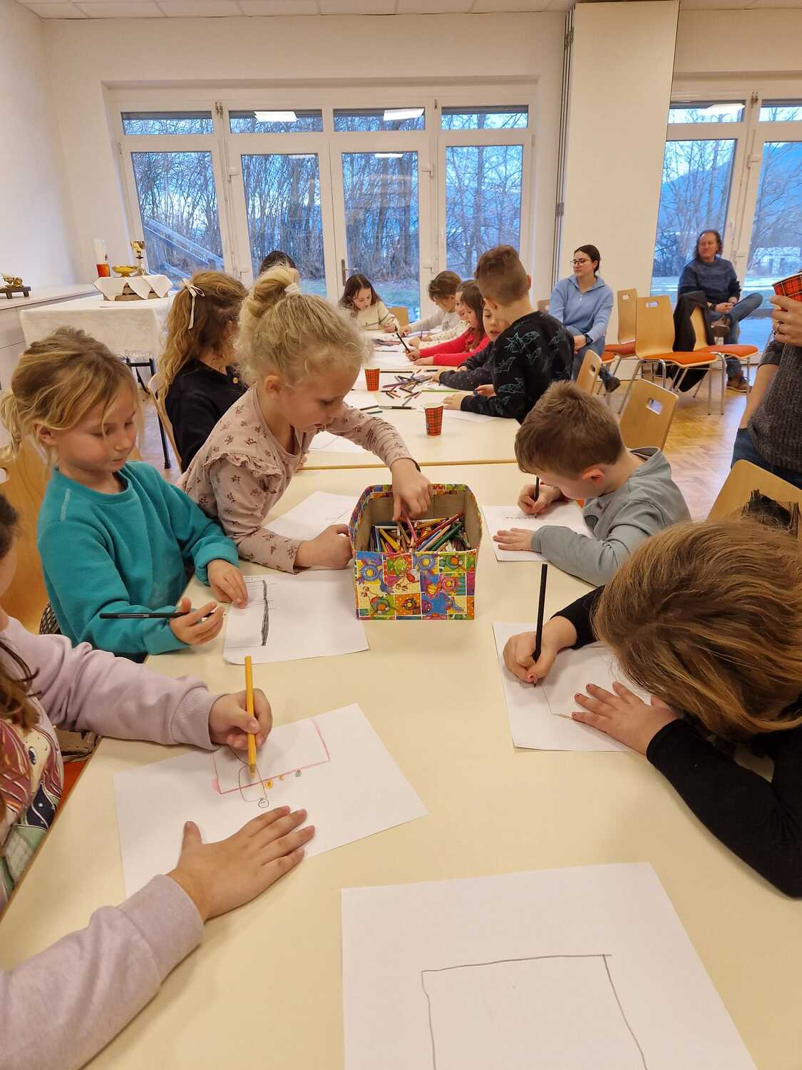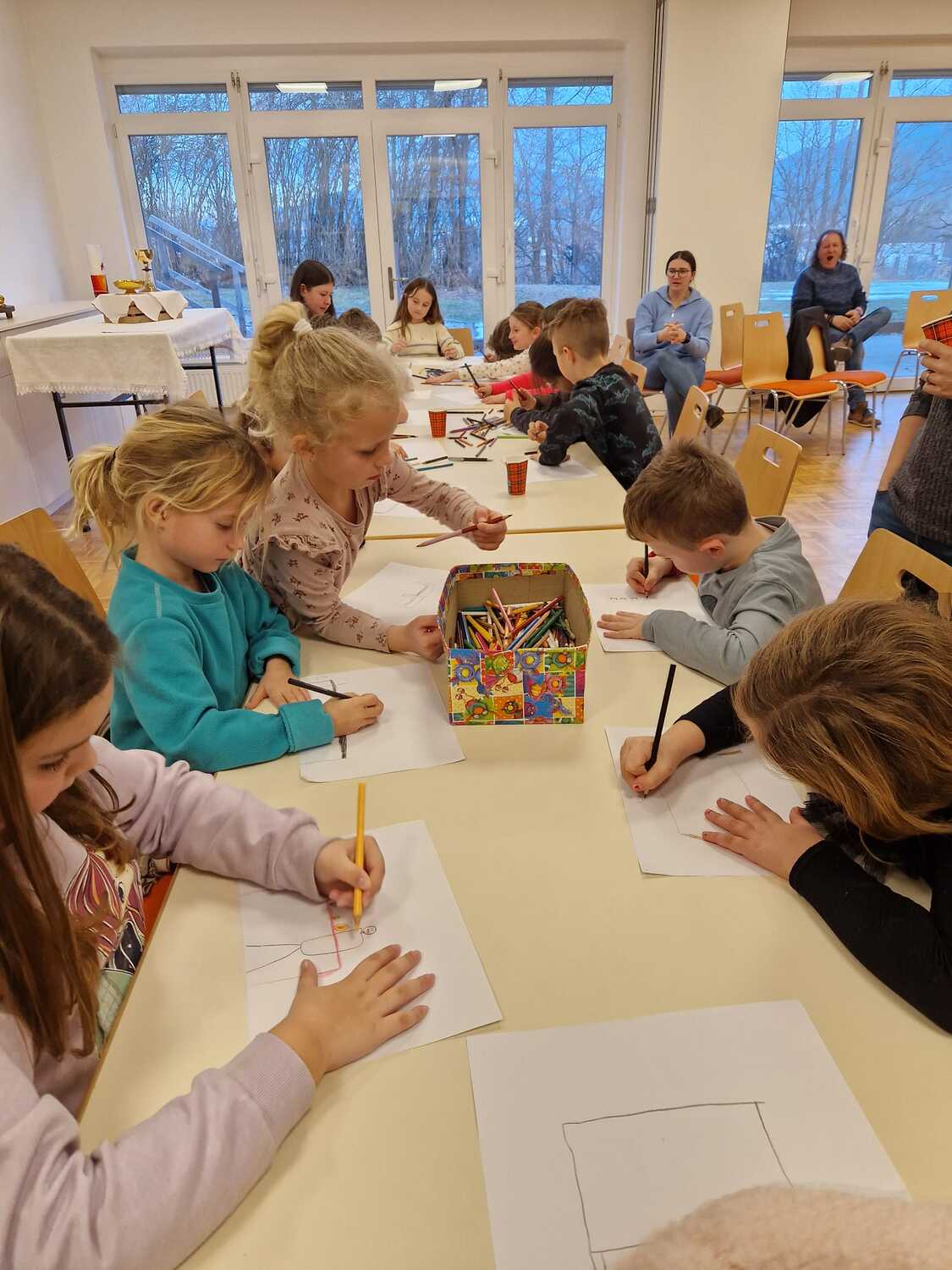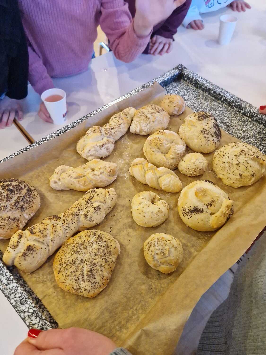 Jeweils an drei Freitagen hintereinander fanden sich in den drei Kapfenberger Pfarren viele motivierte Kinder ein, um köstliche Brot-Weckerln zu backen. Das Formen der Weckerln machte großen Spaß und nach Herzenslust und Geschmack durften diese mit Körnern bestreut werden. Die Backzeit des Brotes wurde mit der Erzählung vom letzten Abendmahl aus einer Kinderbibel überbrückt. Die Kinder sollten anschließend die Szene mit Jesus und den Jüngern am Tisch aus ihrer Fantasie heraus zeichnen.