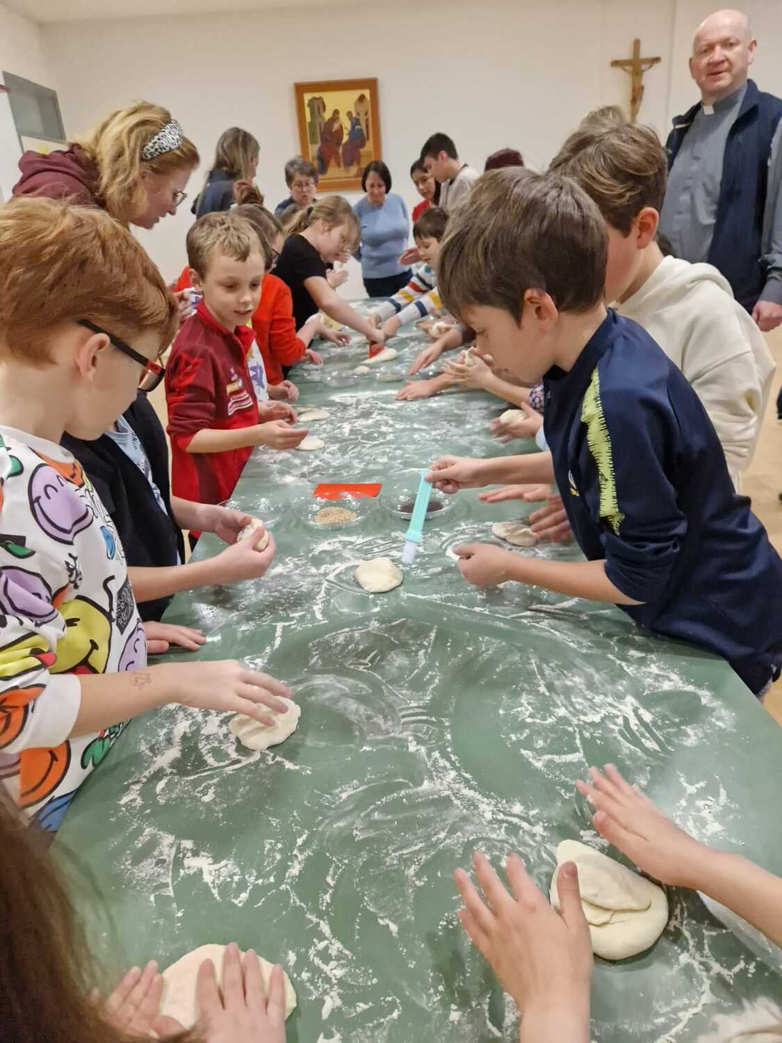 Brotbacken mit den Erstkommunion-Kindern