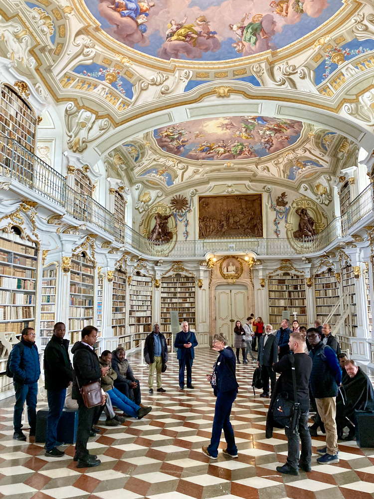 Abt Gerhard Hafner OSB erzählte von der 950-jährigen Geschichte des ältesten steirischen Benediktinerstiftes. Dessen Entstehung ist einer Frau zu verdanken – der heiligen Hemma von Gurk, die 1074 diese für viele Menschen heilsame „mission impossible“ („unmögliche Mission“) ermöglichte. Nicht nur die Führung in der weltberühmten Klosterbibliothek mit vielen kostbaren Schätzen, sondern auch der traditionsreiche Klosterwein und die erlebte Gastfreundschaft machten den Tag unvergesslich.
